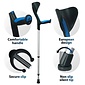 De Advance elleboogkrukken zijn verkrijgbaar in 3 verschillende kleuren: blauw, rood en turquoise.