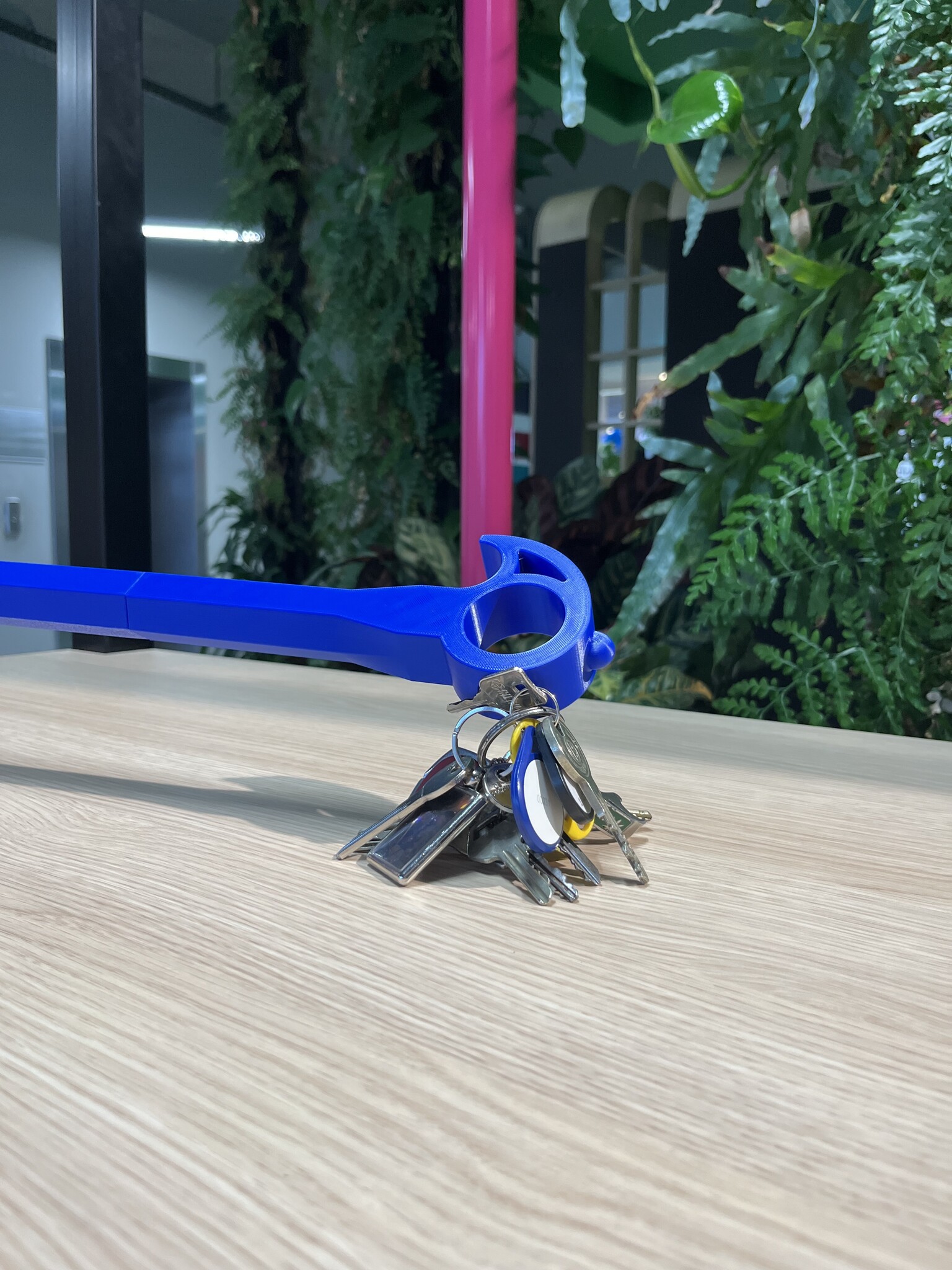 Met de haak trek je moeiteloos een deur dicht. Het kleine bobbeltje aan de voorkant maakt het mogelijk om knoppen in te drukken, zoals die van de lift, deurbel of het bed. Aan de boven- en onderzijde zitten magneten waarmee je sleutels of andere metalen voorwerpen eenvoudig van de grond kunt oppakken. Dankzij het ronde gat in de kop draai je de kraan open of dicht zonder te hoeven reiken.