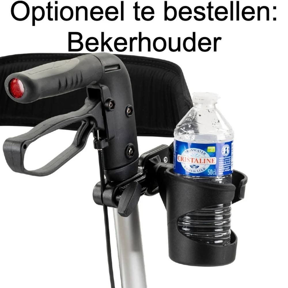 Deze rollator is voorzien van een stokhouder en een gesloten tas met reflecterende randen, deze tas wordt afgesloten met een rits. De luxe comfort rugband is in hoogte verstelbaar, zo kan hij voor iedere gebruiker op de juiste hoogte worden ingesteld voor goede steun in de rug.
