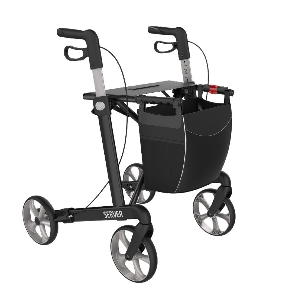 De Rehasense Server is een lichtgewicht rollator die door zijn speciaal ontworpen aluminium frame een zeer uniek uiterlijk heeft. Deze opvouwbare rollator weegt slechts 6,8 kg en is uiterst stabiel. De Rehasense Server rollator wordt standaard geleverd met een stokhouder en een handige opbergtas die zeer eenvoudig op de rollator te plaatsen is.